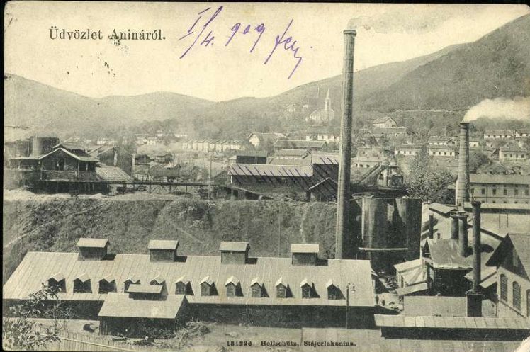 Képeslap: Resicabánya, vasmű belülről – a lap érdekessége, hogy feladója, Vida János szakaszvezető a lap tanúsága szerint vasesztergályosként 30,5 cm-es gránátokat gyártott e helyen…