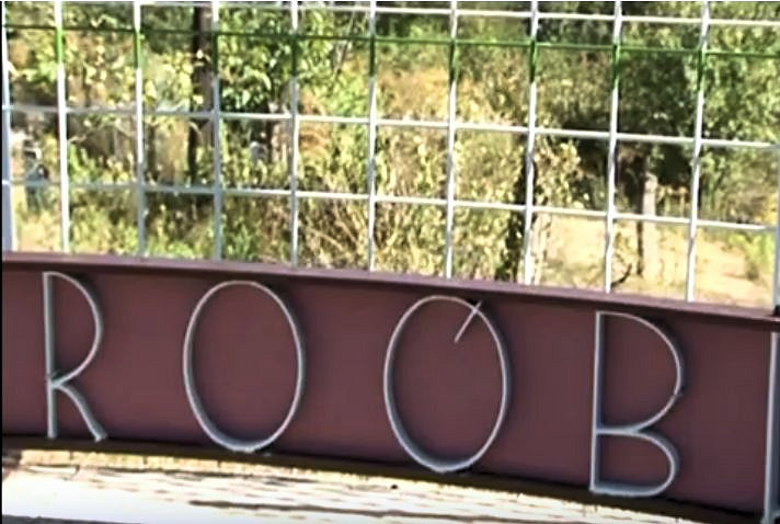 A 2011 októberében felújított ózdi Roób-kilátó a Kerekhegy felől, s a pihenőhely padján megőrzött név.
