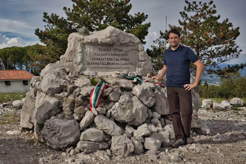 A Monte San Michelén álló olasz emlékmű mellett, 2023 őszén (Fotó: Juhász Balázs)