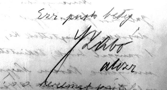 Aláírása az egyik parancson, amikor Weeber Ede ezredest helyettesítette