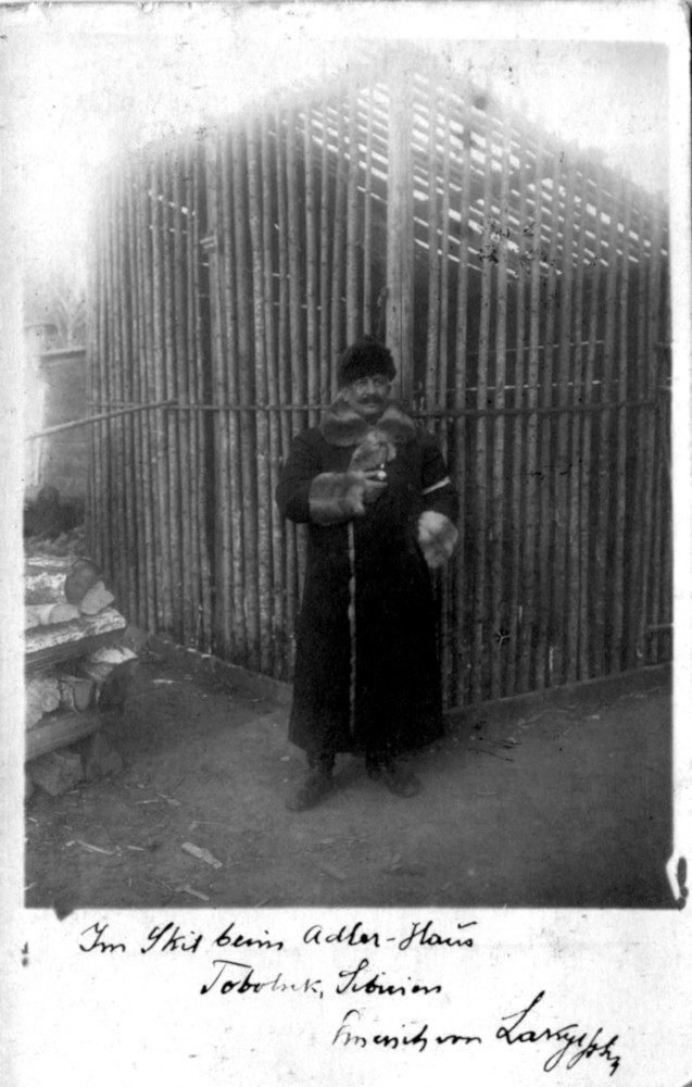 Komadina Konstantin kapitány a szibériai Tobolszk orosz hadifogolytáborában, a Mihajlovszkij Szkit remetelakban, 1916-ban. A vele raboskodó Laky Imre tartalékos százados felvétele.