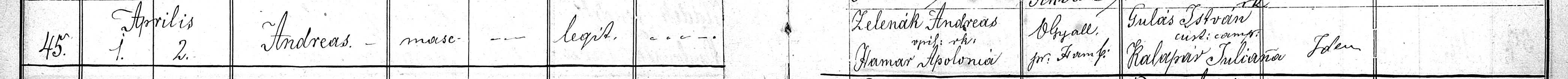 Zelenák András anyakönyvi bejegyzése az ógyallai katolikus születési, keresztelési anyakönyvben.