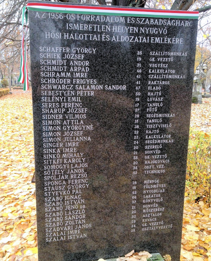 Az 1956-os forradalom és szabadságharc ismeretlen helyen nyugvó hősi halottai és áldozatai emlékére emelt emlékmű.