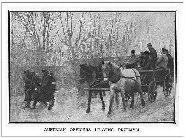 Osztrák–magyar tisztek hagyják el fogolyként Przemyślt.