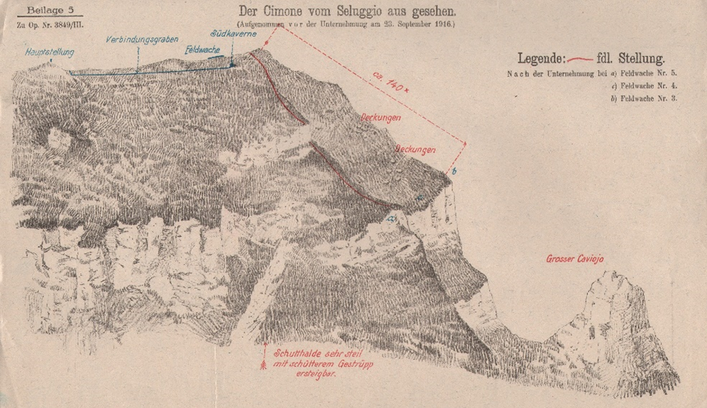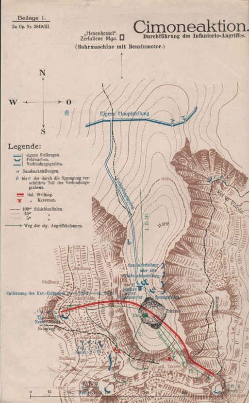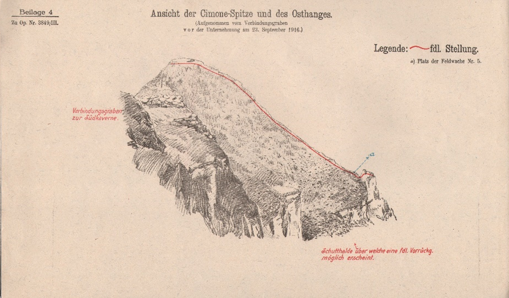 Július 29-én a hadtest kiadta a parancsát: „Az olaszok kiűzését a Cimone-csúcsról tervszerűen és nagy lendülettel kell végrehajtani, hogy az ellenség további térnyerését a Cimonétól délre megakadályozzuk. Eltekintve a kilátásba helyezett tüzérségi bombázástól, az ellenséges állások robbantását végre kell hajtani. A robbantó táró előre hajtását még a kilátásba helyezett Fauk-féle fúrógépek beérkezése előtt el kell kezdeni.”