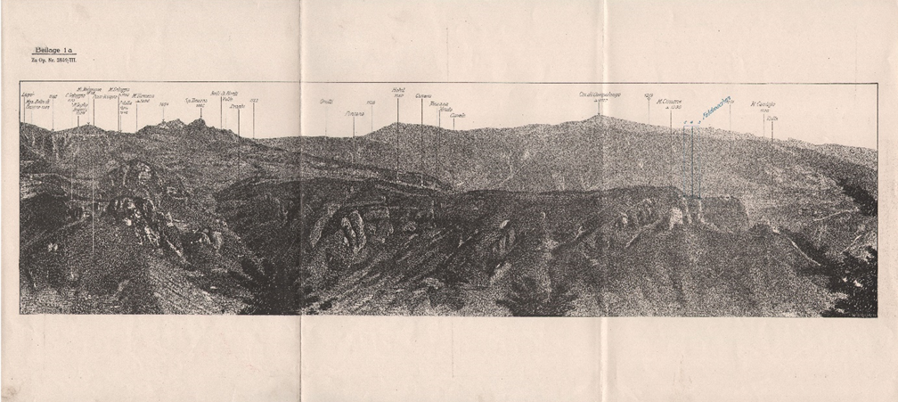 Kilátás a Tonezza-csúcson lévő tüzérségi megfigyelő pontról a Monte Cimone és a Riofreddo-völgy irányába (kép forrása: Wikimedia Commons)