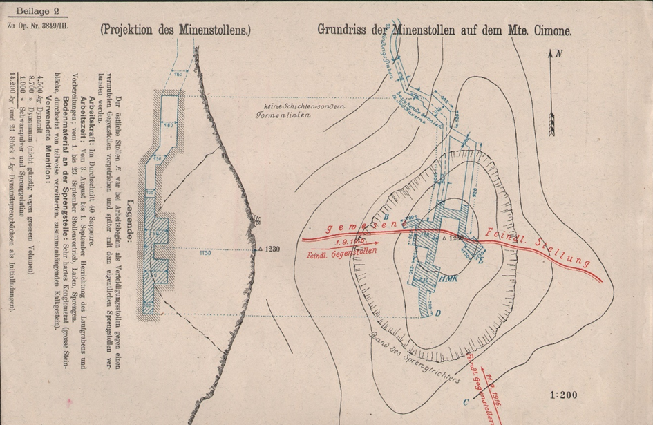 A hadtest most már kénytelen volt leállítani minden föld feletti akciót a csúcs visszaszerzésére és elrendelte a felrobbantását. Ehhez előnyős előfeltétel volt, hogy az ellenség ismételt támadások ellenére sem tudta elfoglalni az állásai előtt csekély távolságra lévő és azok alatt fekvő déli kavernát. Távolsága a háromszögelési ponttól csupán 24 lépés volt. Ezt a két front között elszigetelten fekvő kaverna lett a tervezetta föld alatti támadás kiindulási pontja.