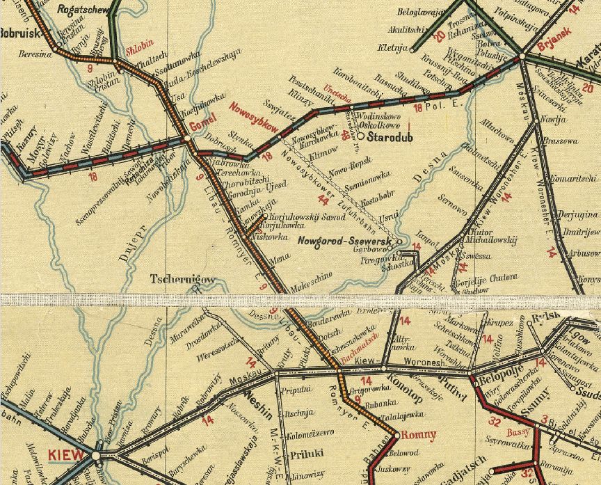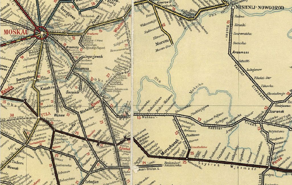(Forrás: “Die russichen Eisenbahn”, 1912. – American Geographical Society Library, University of Wisconsin Milwaukee Libraries, https://collections.lib.uwm.edu/digital/collection/agdm/id/18644/rec/207)