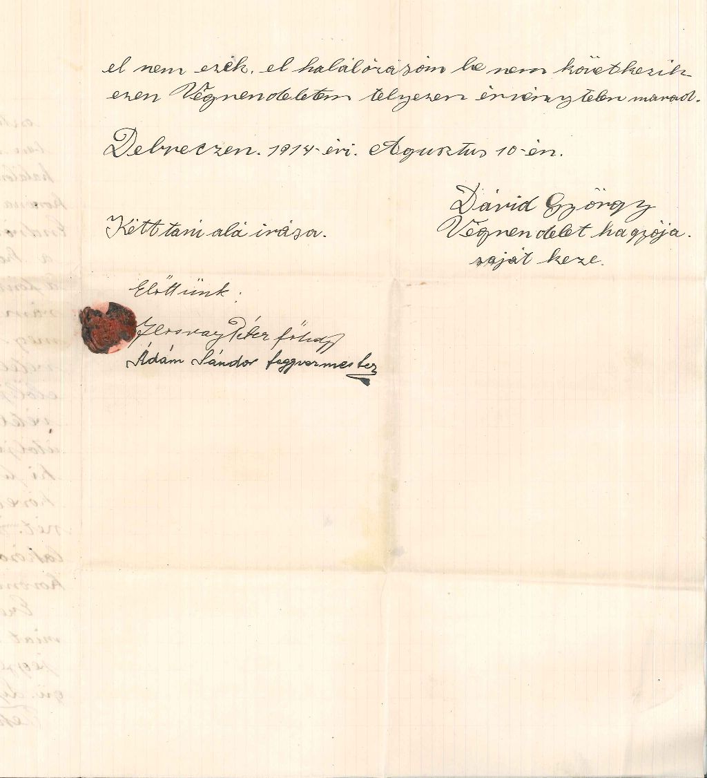 Két tanú aláírása Dávid György végrendelet hagyója „