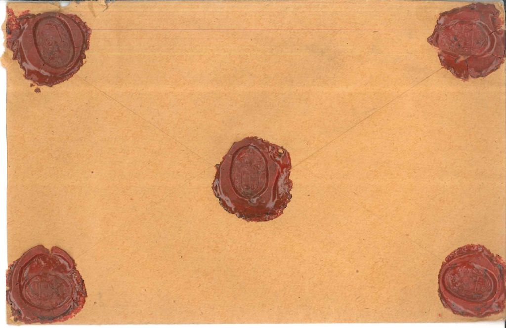 9. ábra: A boríték hátoldala a pecsétekkel (kép forrása: Határ Győző Városi Könyvtár Digitális Archívuma. Digdok/Endrőd/magánélet/végrendeletek)