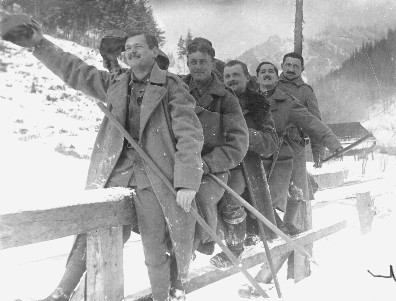 Vidámabb pillanat az orosz hadszintéren, Homolya Antal tizedes (balról a második) és bajtársai