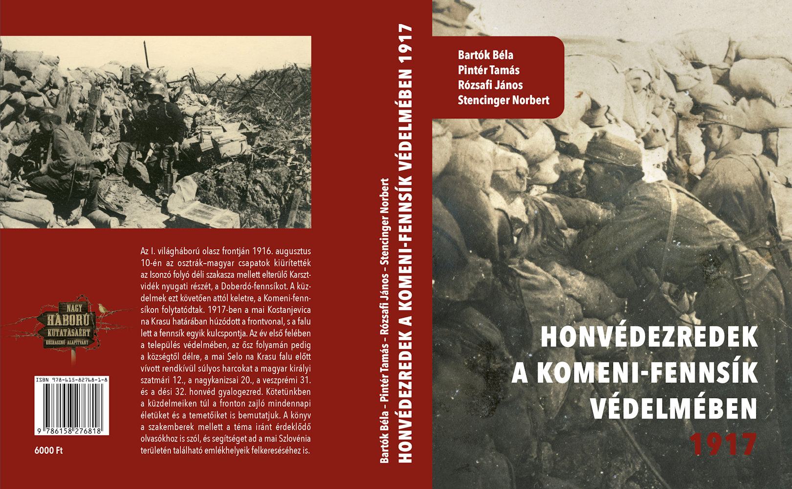 Így kerültem én most ide a pódiumra, hogy röviden beszéljek a Honvédezredek a Komeni-fennsík védelmében 1917 című frissen megjelent kötetről, melynek szerzői – szigorúan ABC-sorrendben – Bartók Béla, Pintér Tamás, Rózsafi János és Stencinger Norbert, mindvégig tekintettel arra, hogy a rendezvény későbbi részében pódiumbeszélgetés résztvevői fogják alaposan átbeszélni a kötet tartalmát. Szóval nekem gondosan kerülnöm illik, hogy bármely, a beszélgetés során, azaz később élesítendő poént akárcsak véletlenül is lelőjek.