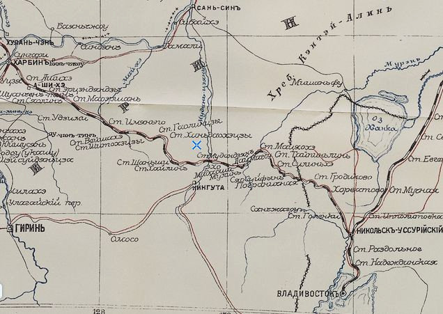 A Habrin–Habarovszk útszakasz Sztanyiszlav Mihajlovics Fomenko: Спутнiкъ по Дальнему Востоку (Sputnik po Dal’nemu Vostoku/Útitárs a Távol-Kelethez) c. útikönyvének Észak-Mandzsúriát ábrázoló térképéről. Habrin, 1911. A kézikönyv alapmű volt a korszak utazói, kereskedői és a térségben dolgozó tisztviselők számára, mivel gyakorlati tanácsokat és térképeket is tartalmazott Kína, Mandzsúria, Mongólia, Korea, Szibéria és Japán területéről.