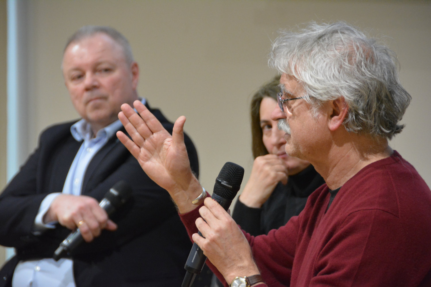 Kincses Károly élénken magyaráz a beszélgetés során.