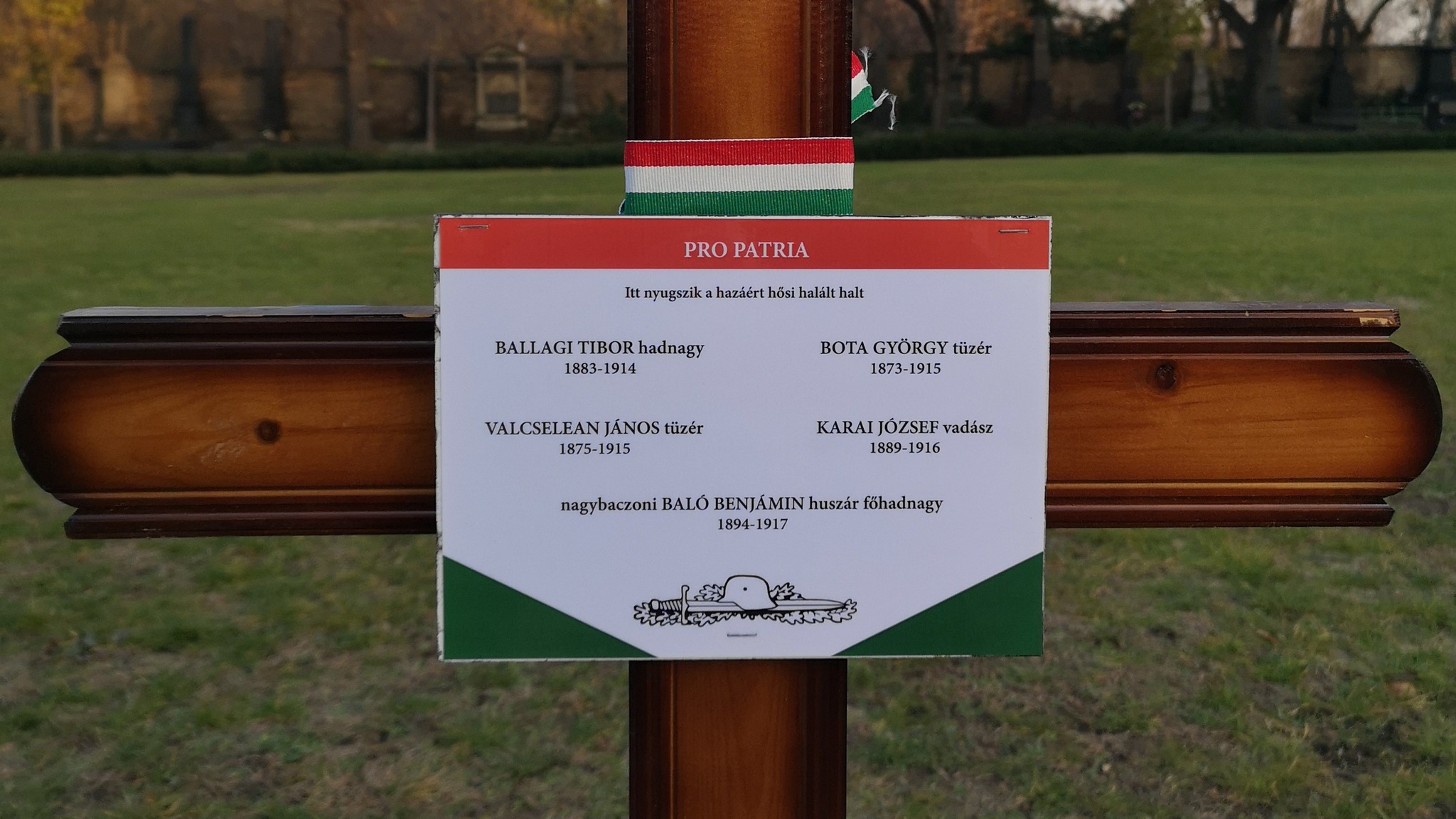 Baló Benjámin neve a Fiumei úti Sírkert 52-es, Hősi parcellájának egyik sírkeresztjén (Fotó: Pintér Tamás)