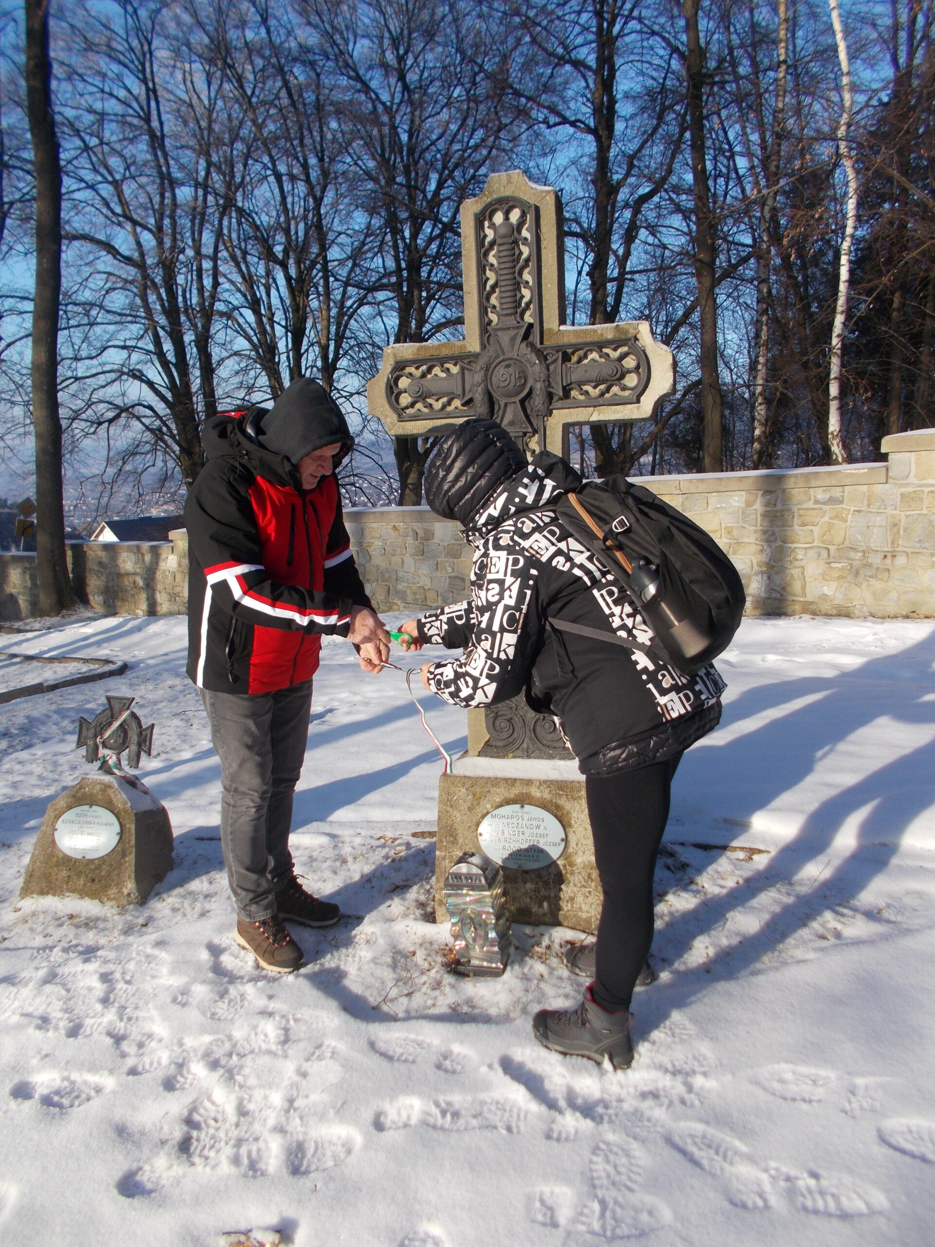 A limanovai csata hőseinek nyughelyén nemzetiszín koszorút, valamint mécseseket gyújtottunk és nemzetiszínű szalagot kötöttünk a magyar katonák sírjaira (Fotó: Topor István)