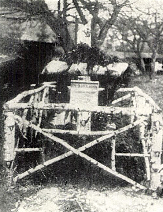 Baló Benjámin főhadnagy ideiglenes sírja Frumosán (Forrás: A m. kir. debreceni 2. honvéd huszárezred története 1869-1918. Szerk. Radák Lajos. Bp. 1939.)