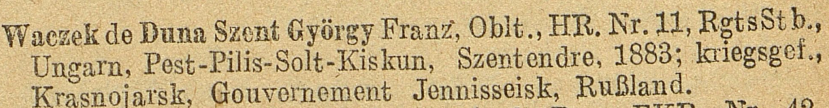 Waczek Ferenc neve a hivatalos Veszteséglista 329. számában (Forrás: Verlustliste, 329. szám. 5.