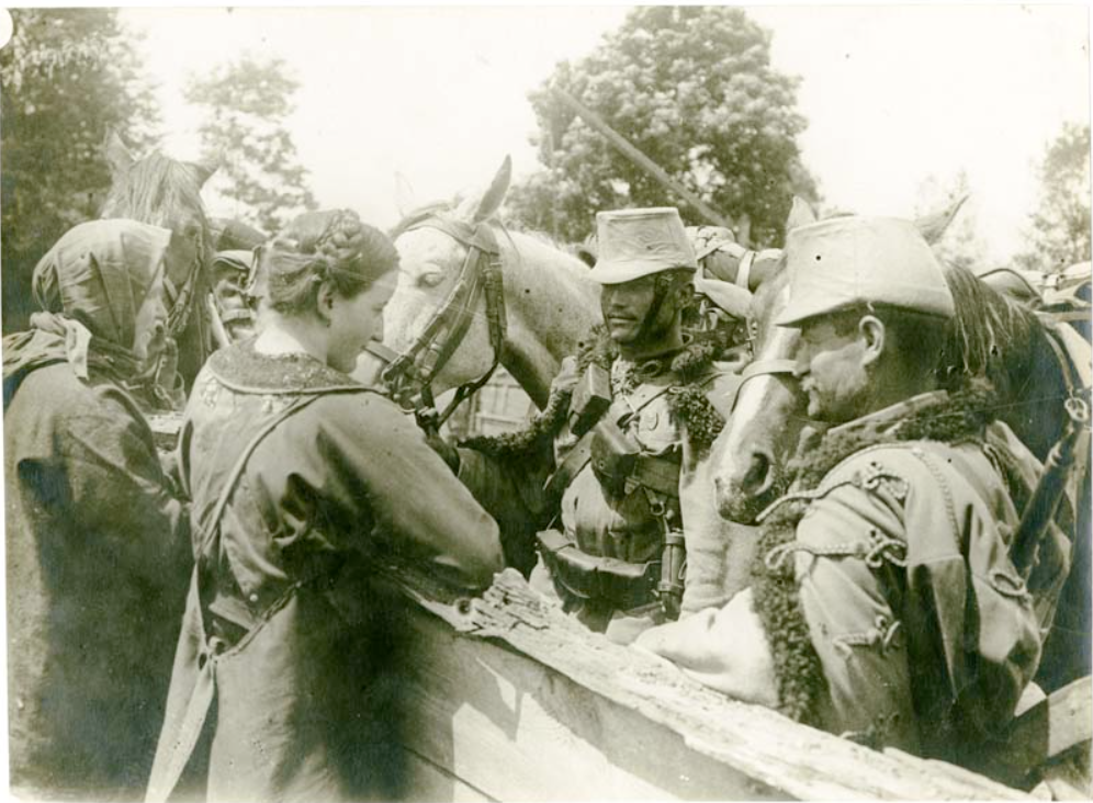 Magyar huszárok beszélgetnek lengyel asszonyokkal (Forrás: OSZK Történeti Fénykép- és Interjútár, FVB 2599)